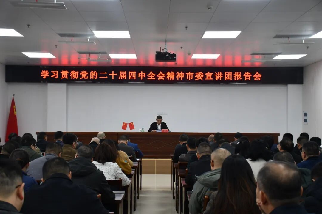 11月19日,學習貫徹黨的二十屆四中全會精神市委宣講團在市國資系統(tǒng)開展宣講。市委宣講團成員,市國資委黨委書記、主任胡春勇作宣講報告。